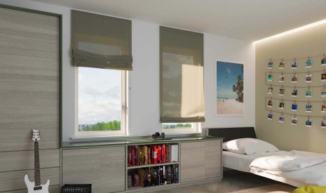Ha egyedi tervezésű római rolót szeretne hálószobájába, a nehezebb szövetek, például a bársony vagy a gyapjú ideálisak lehetnek, mivel a lágyabb hajtások kellemesebb hangulatot biztosítanak a helyiségnek. Fontos megemlítenünk, hogy ha teljes sötétséget szeretne elérni javasoljuk, hogy kérjen sötétítő bélést is.